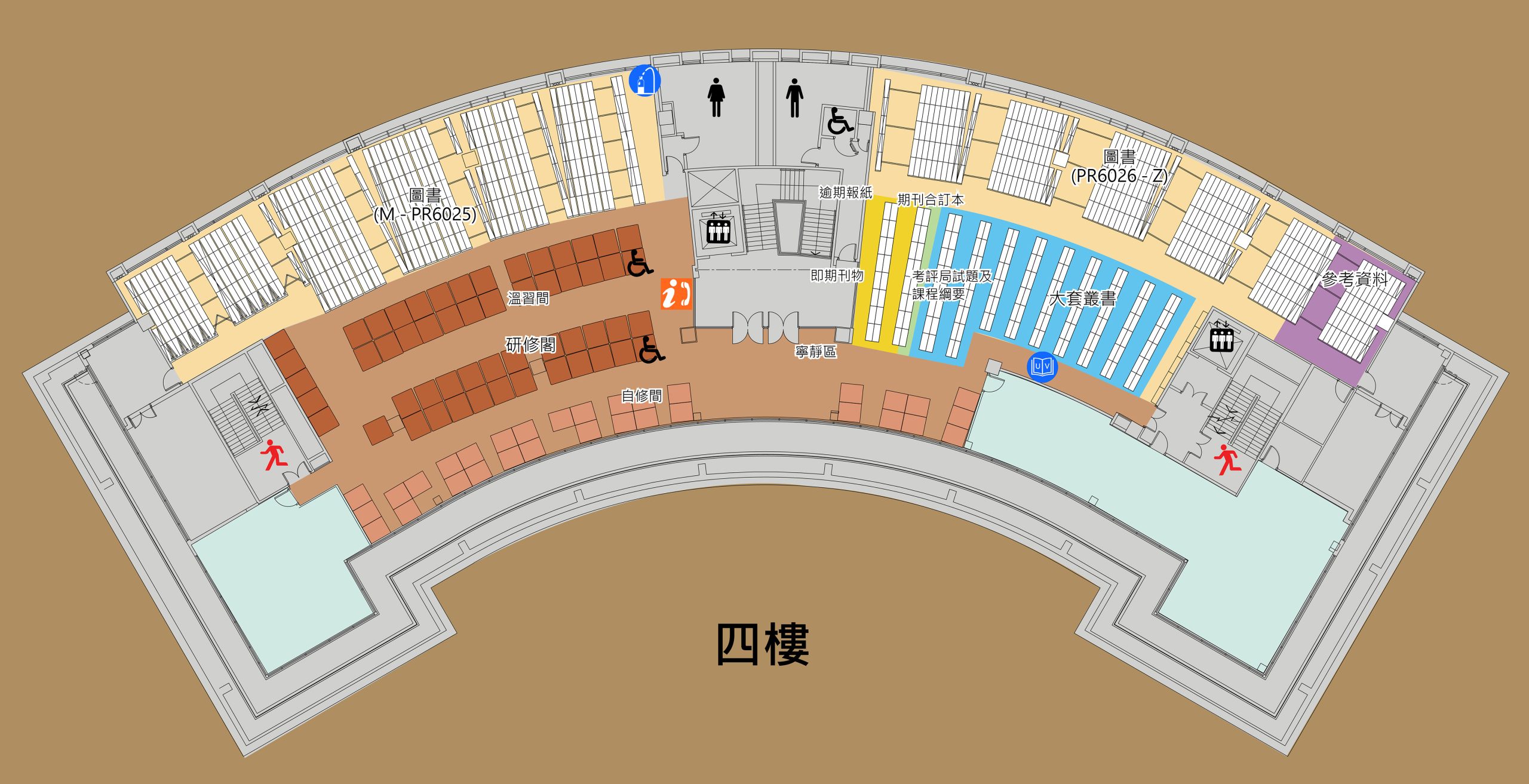 四樓 一般藏書 (M – Z) 大套叢書 參考資料 即期刊物 期刊合訂本 考評局試題及課程綱要 逾期報紙 三樓 一般藏書 (A – L) 媒體資料 縮微資料 二樓 教科書 教學資料 一樓 兒童文學特藏 香港兒童文學特藏 台灣兒童讀物特藏 特大圖書 地下 報紙 指定參考資料 低層平台 初創特藏 將軍澳教學中心圖書館 圖書 媒體資料 指定參考資料 期刊