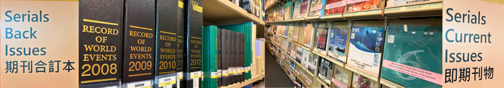圖書館的在訂紙本期刊及報章超過三百種,新收的期刊及期刊合訂本放置在蒙民偉圖書館四樓閱覽架上,而較少使用的期刊合訂本則存放在校外書庫。本校師生,以及持有效圖書證之校外會員皆可網上預約借閱閉架書庫藏品,一般需時三個工作天 (不包括週末及公眾假期)。預約物品送抵指定圖書館後,讀者將收到取件電郵。 位置 蒙民偉圖書館:四樓;將軍澳教學中心圖書館; 閉架書庫